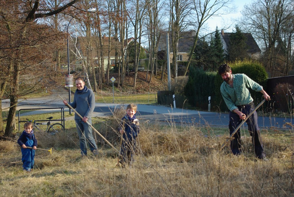 Spontan wurde das heutige, schöne Wetter genutzt und die Wildblumenwiese mit der Sense gemäht. Die Thieles, besonders die Jüngsten Emil und Moritz, sowie Roland mit der Sense, folgten meinem kurzfristigen Aufruf und halfen tatkräftig mit!